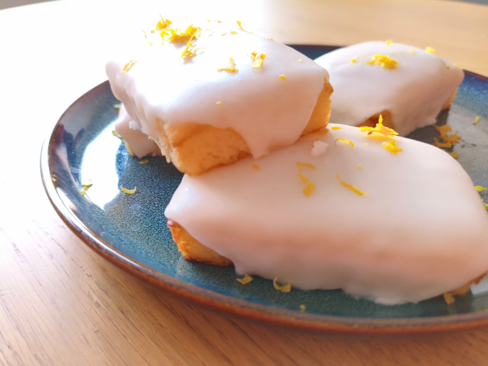 Un biscocho de limon cubierta con glase de limon. Imposible resistirse, es una esponja!!
